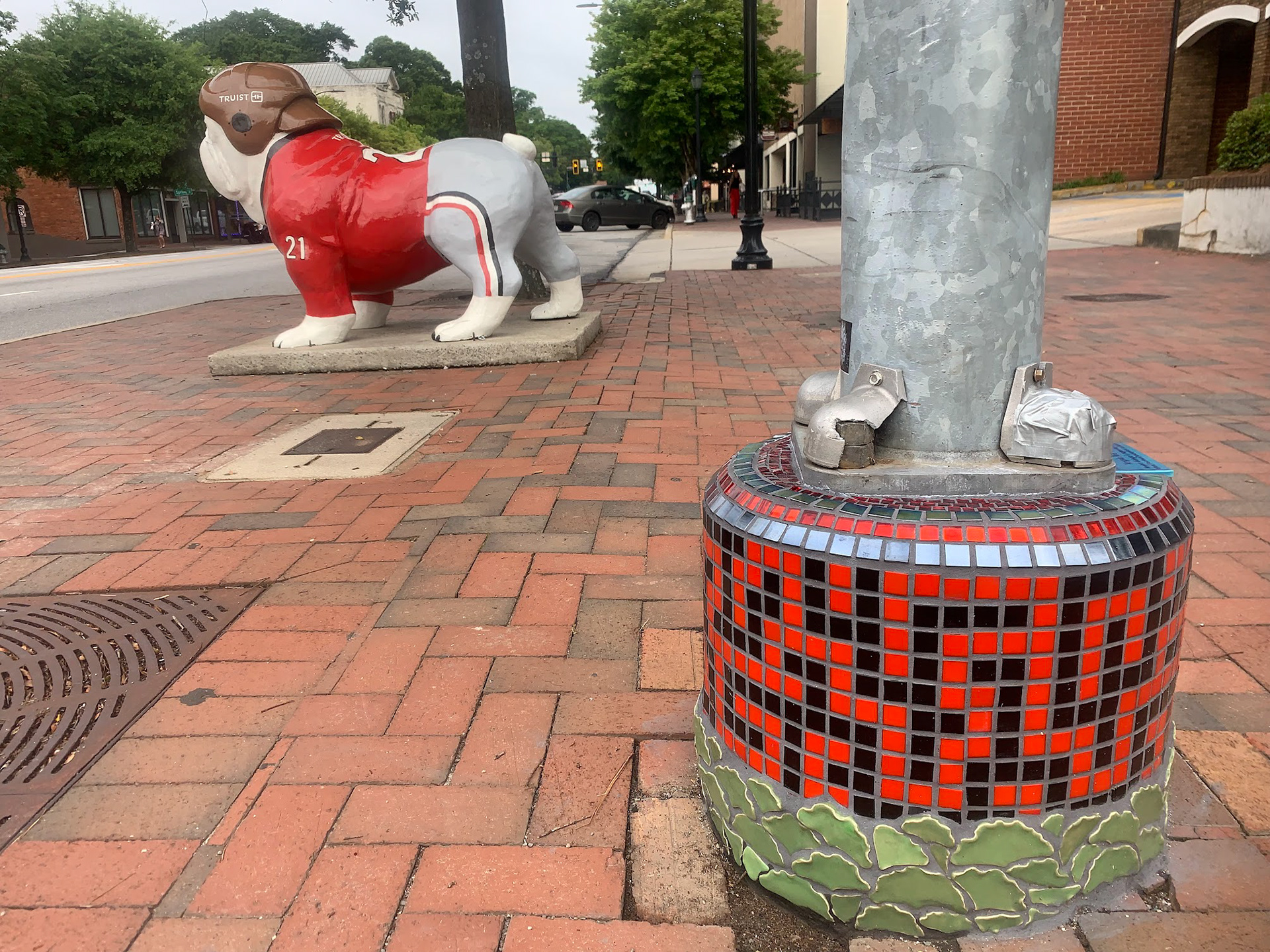 Project Ginkgo 2018: Lightpole base mosaic installed outside of The World Famous on Hull St.