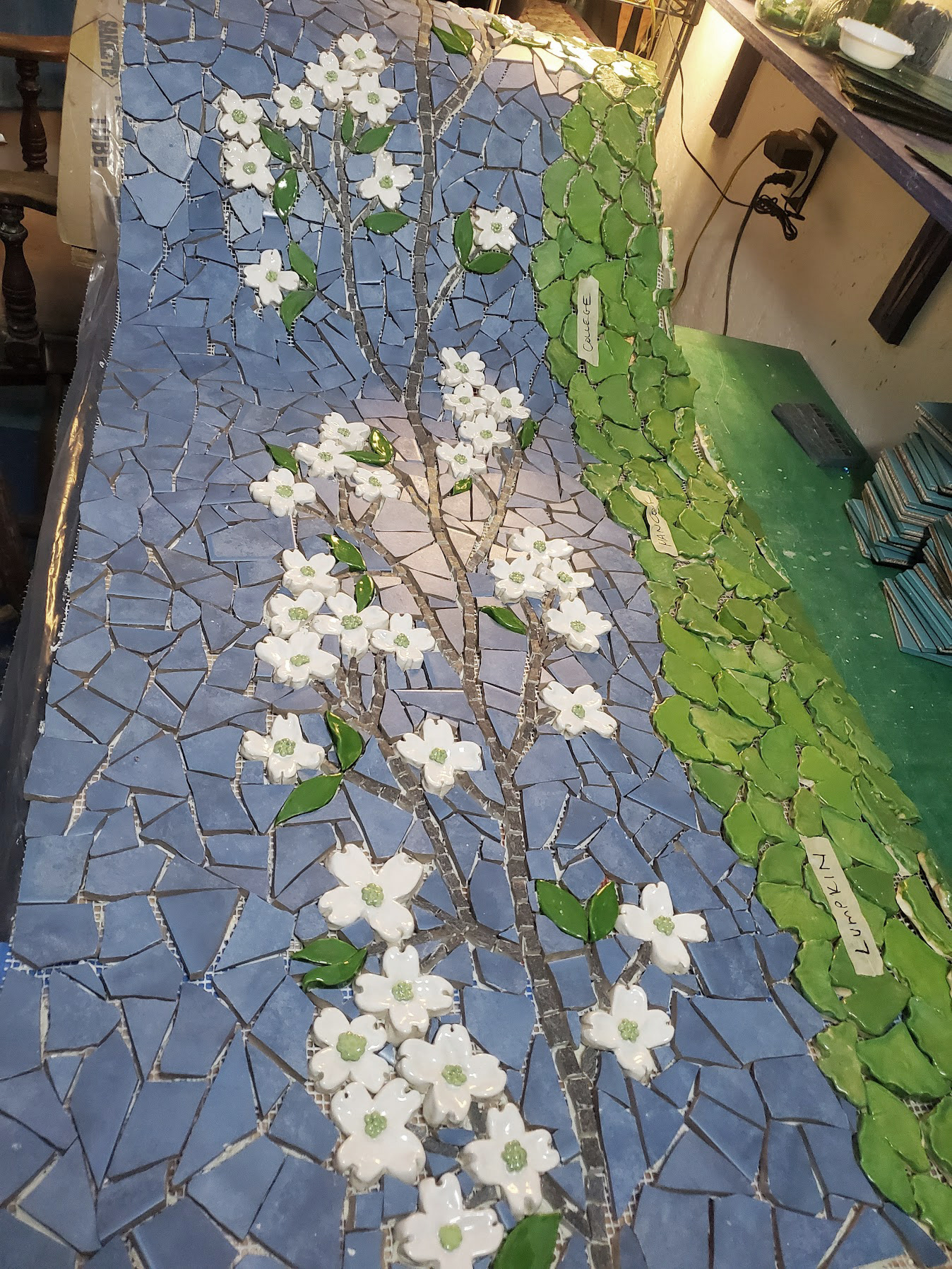 Project Ginkgo 2018: The second Project Ginkgo mosaic, inspired by the nearby Birdsong mural