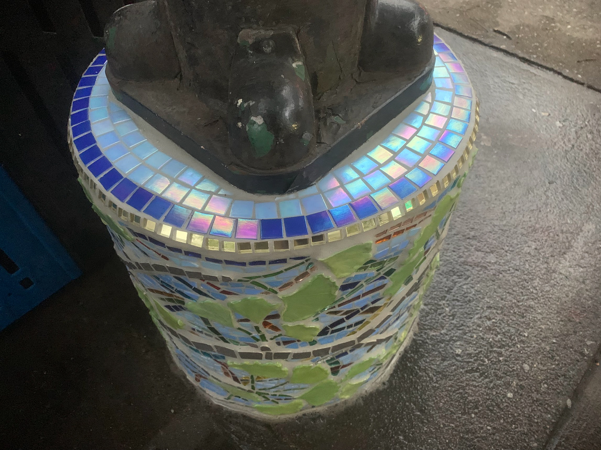 Project Ginkgo 2018: Lightpole base mosaic installed outside of The World Famous on Hull St.