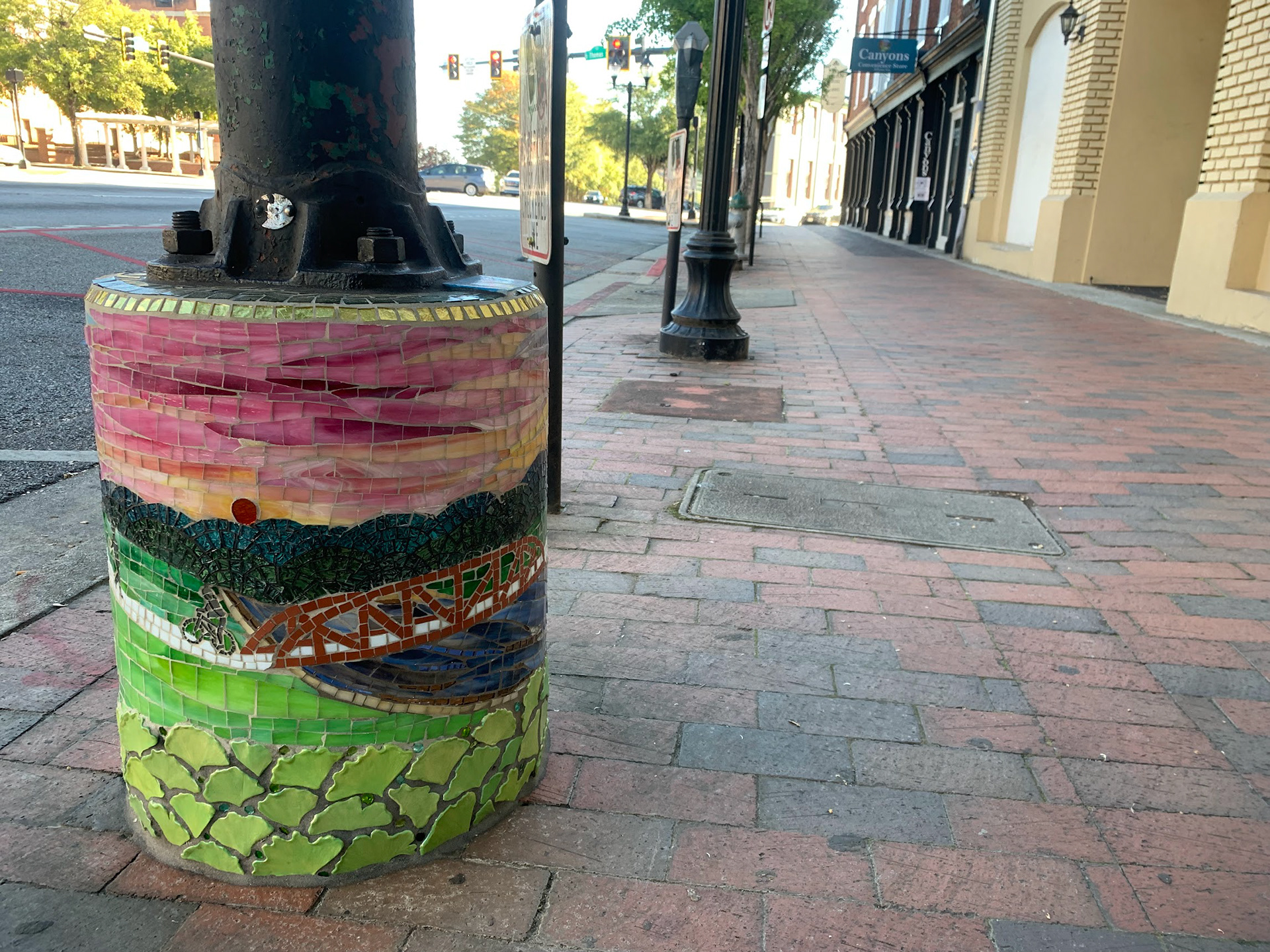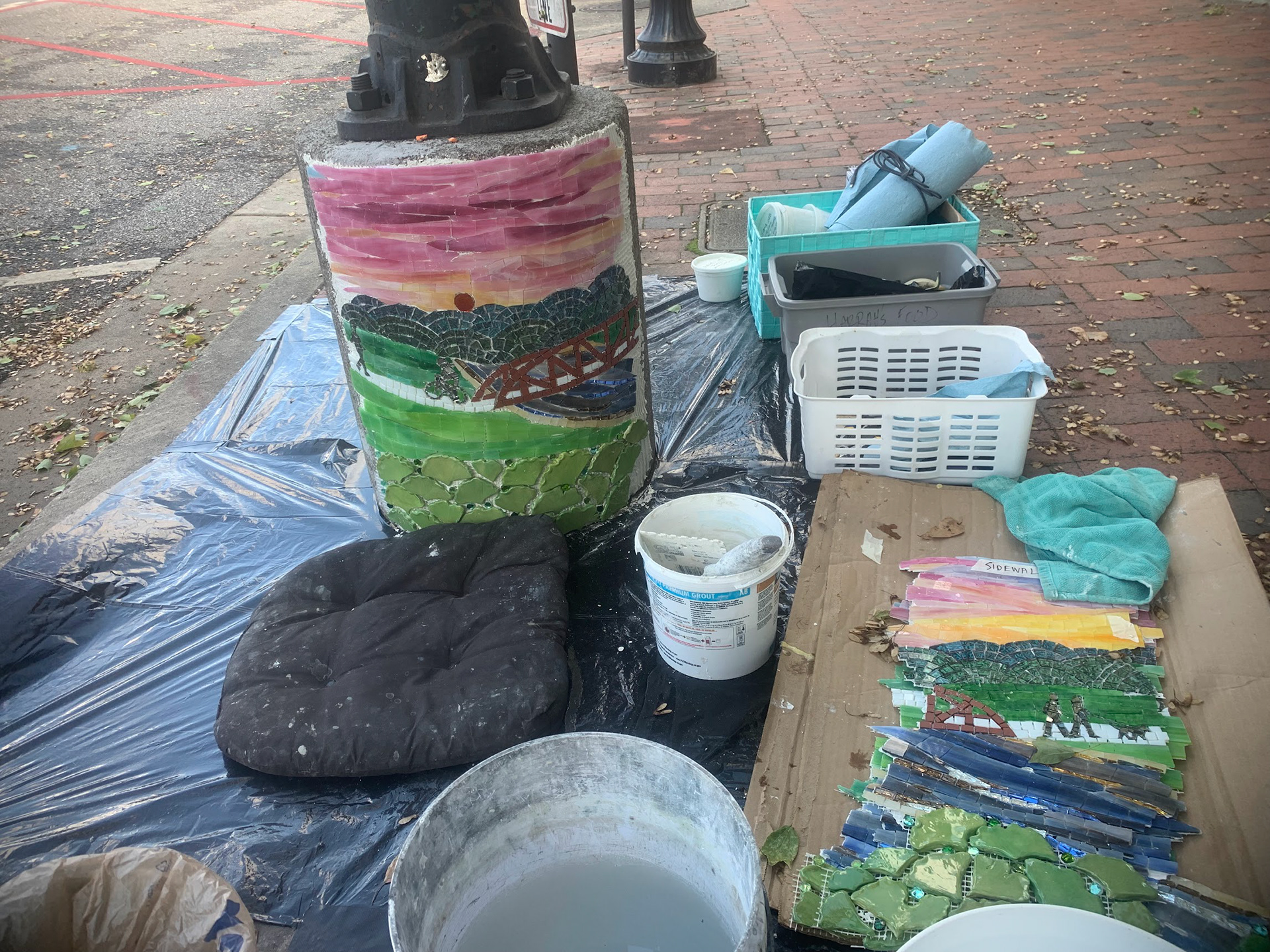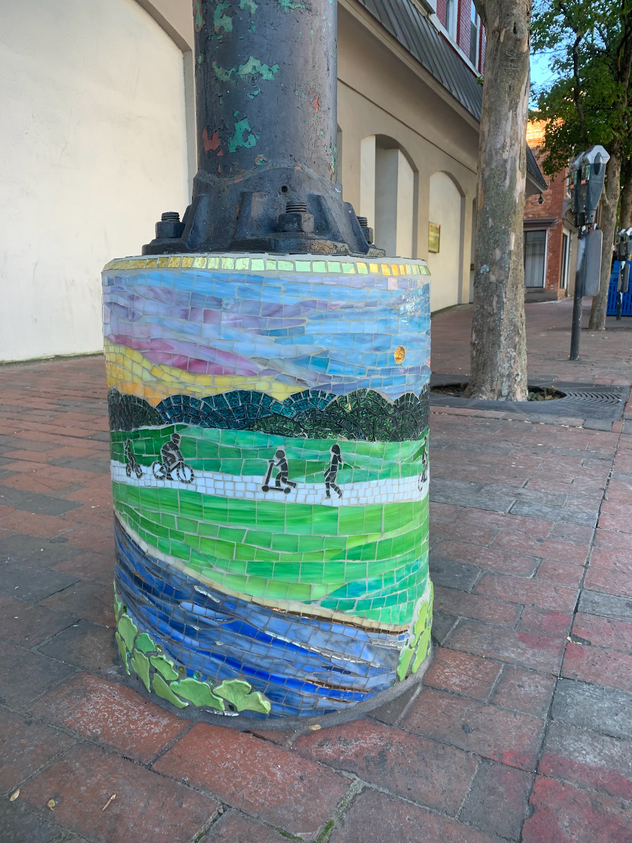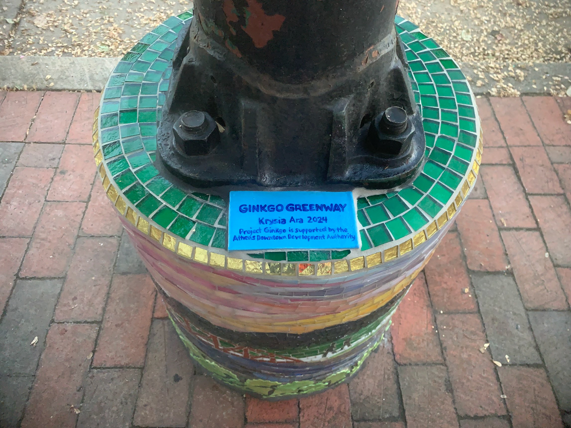 Project Ginkgo 2019: Lightpole base mosaic installed near the historic Morton Theater