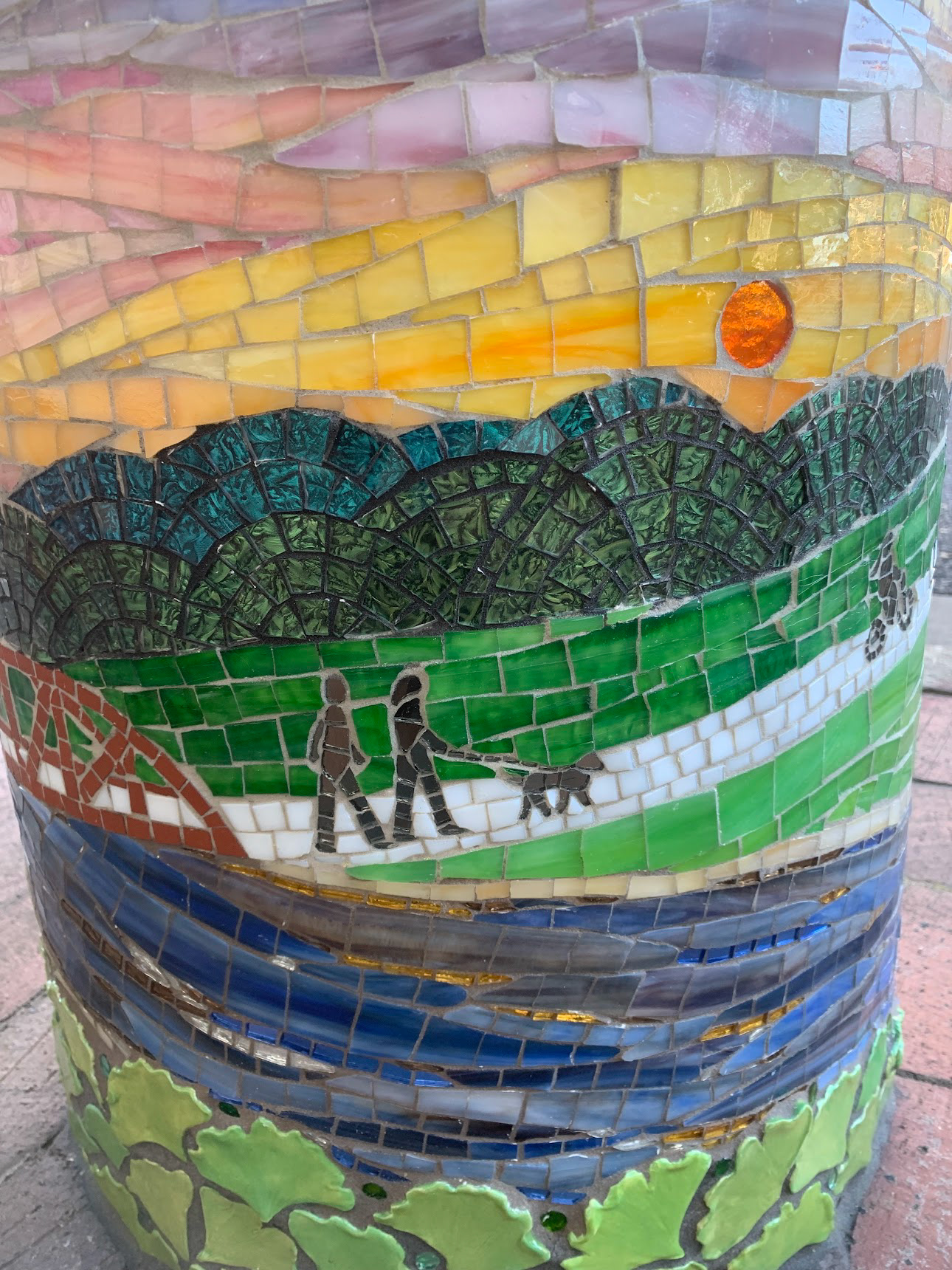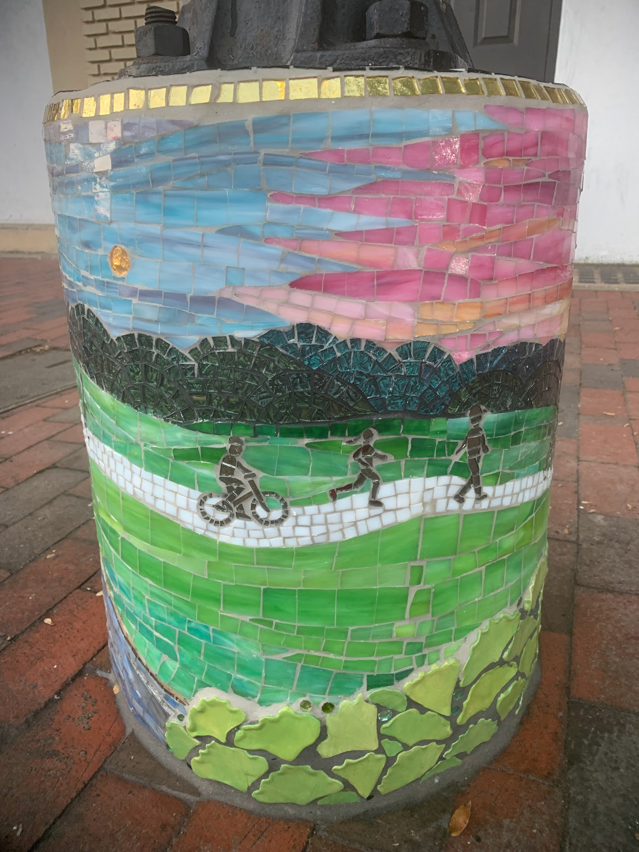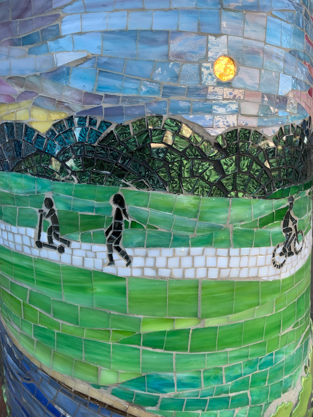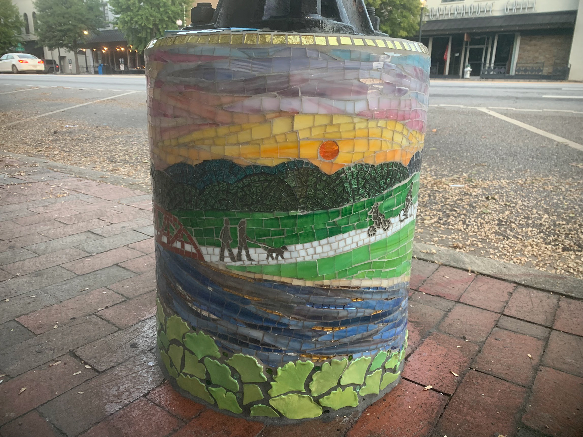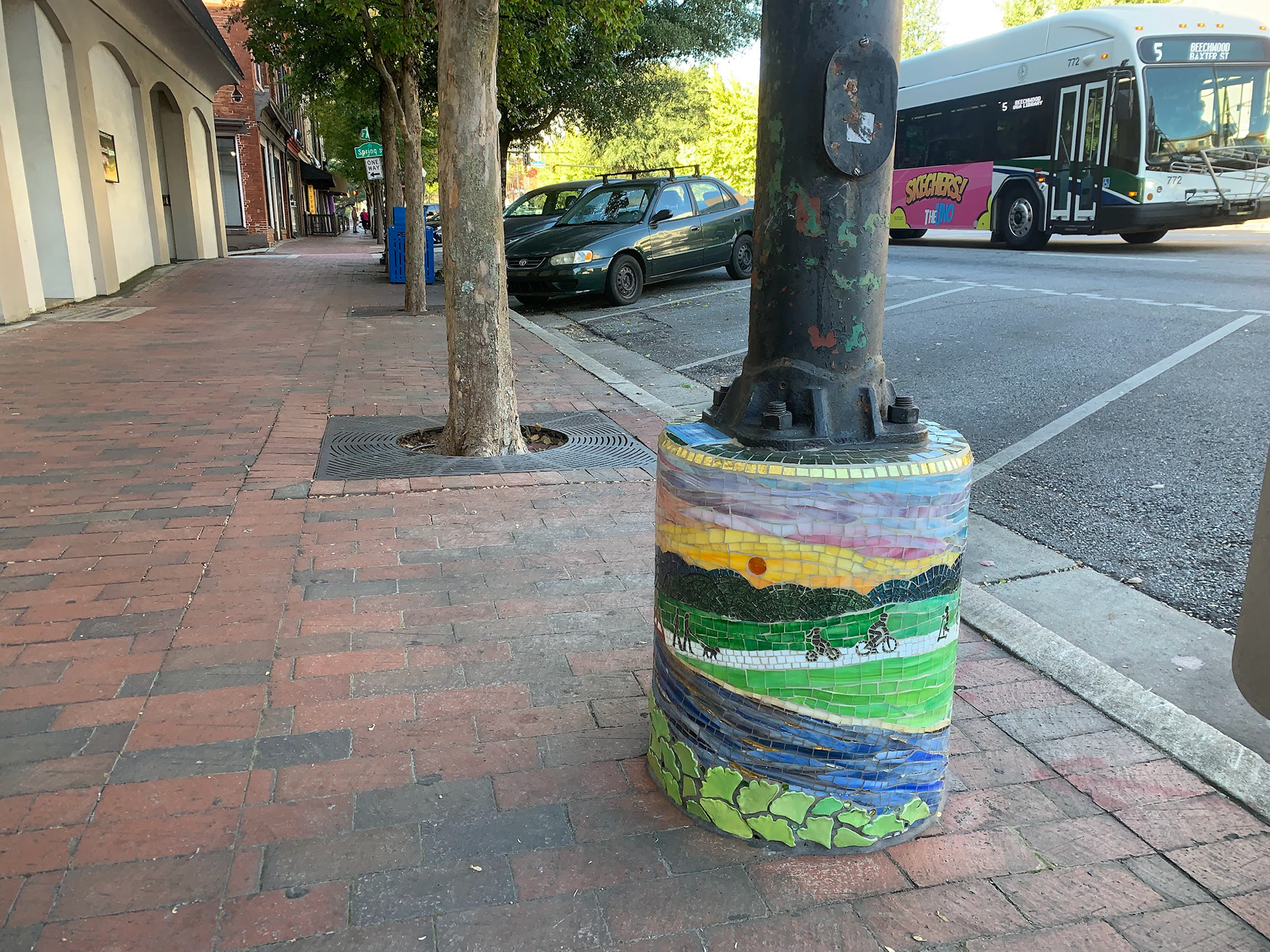 Project Ginkgo 2019: Lightpole base mosaic installed near the historic Morton Theater