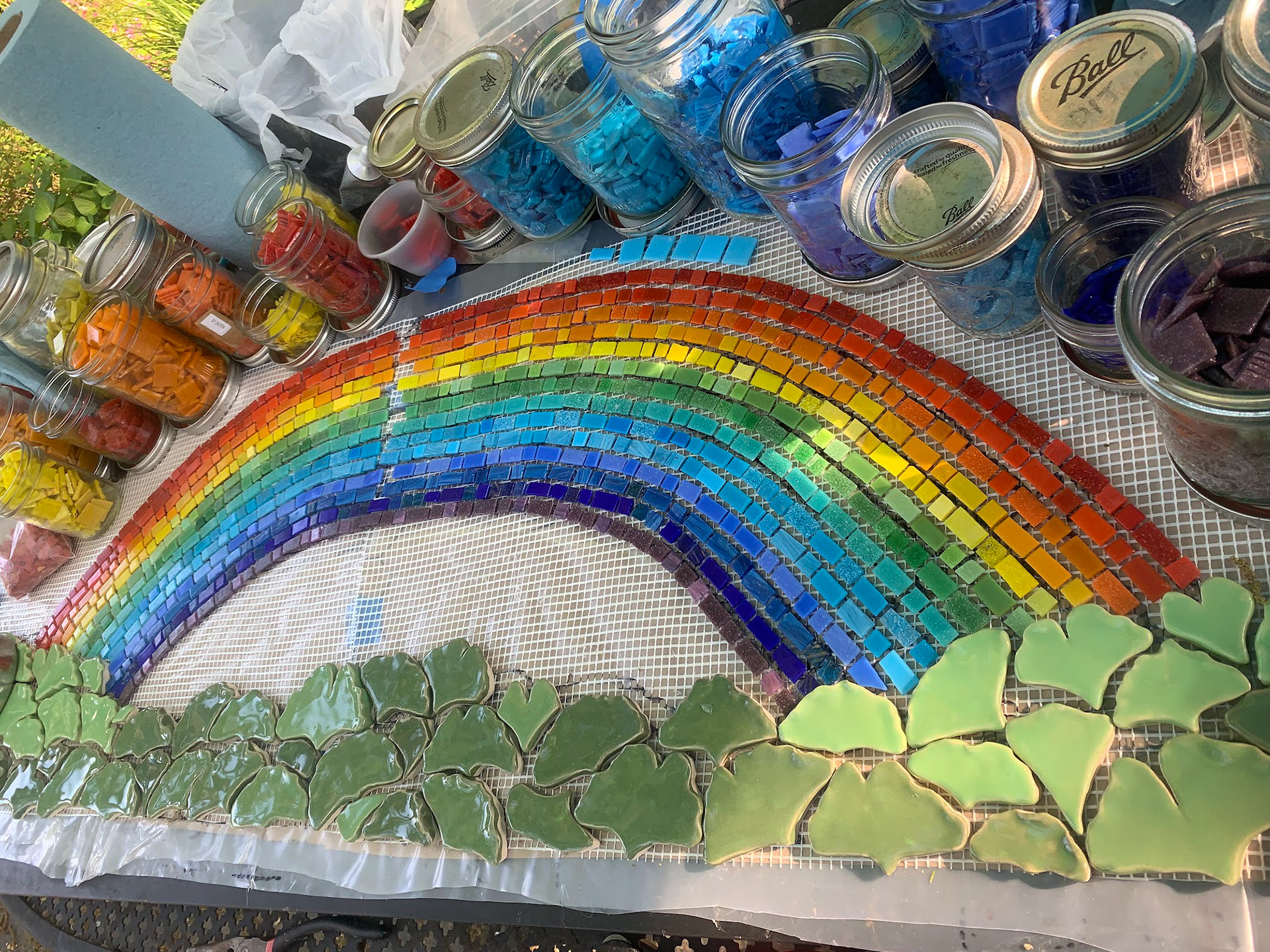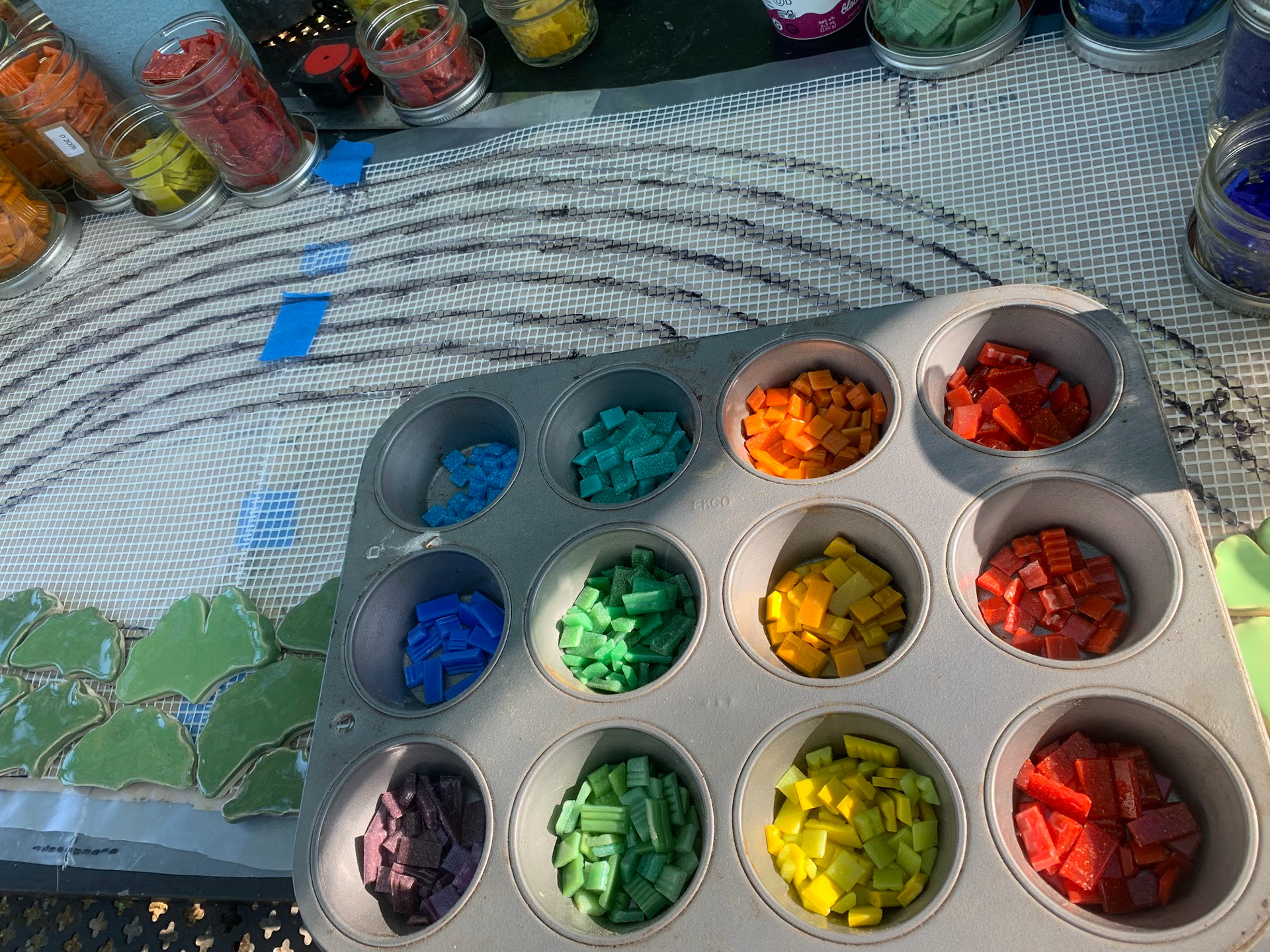 Project Ginkgo 2022: A mosaic rainbow down the street from mosaic rain