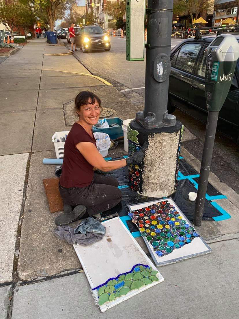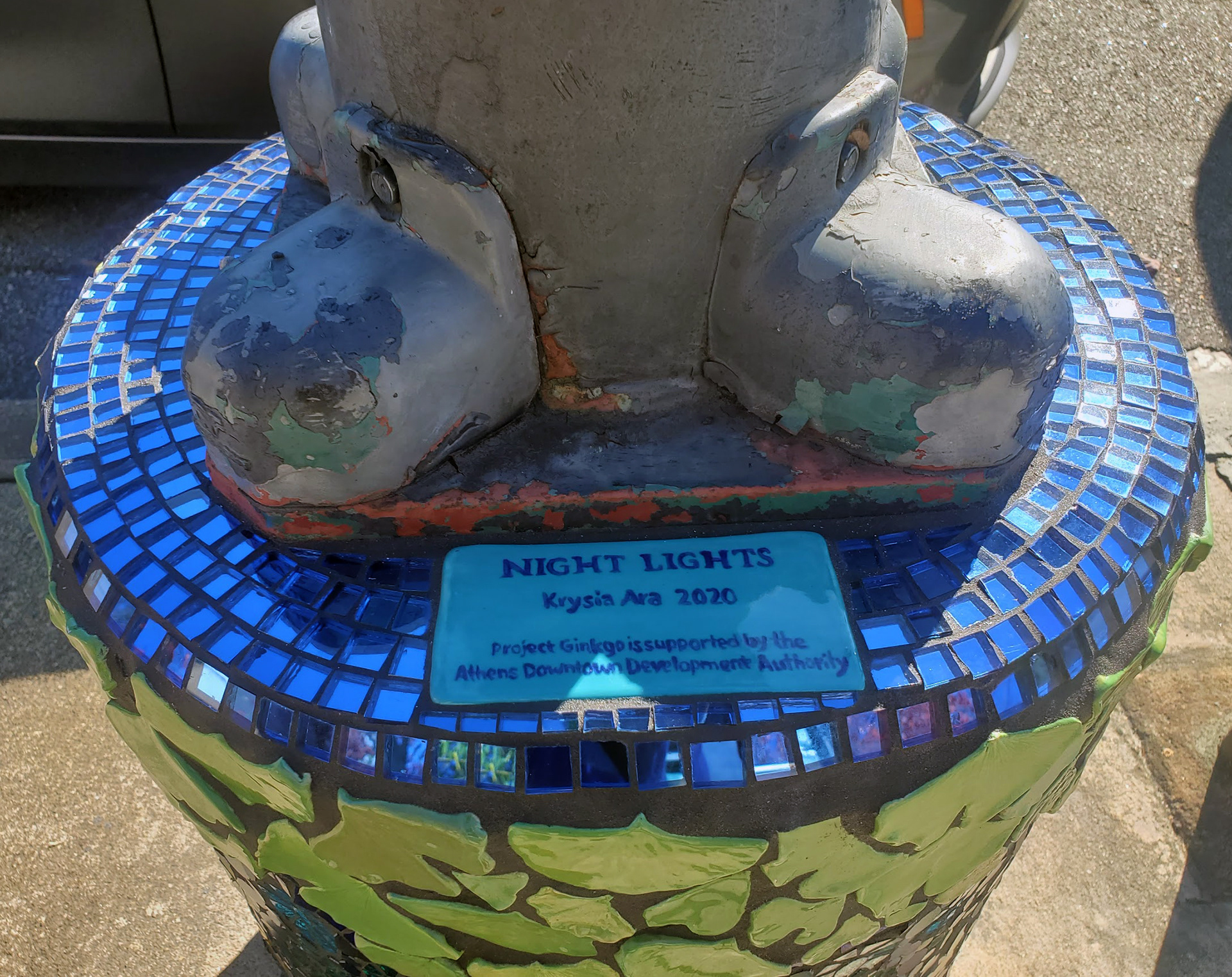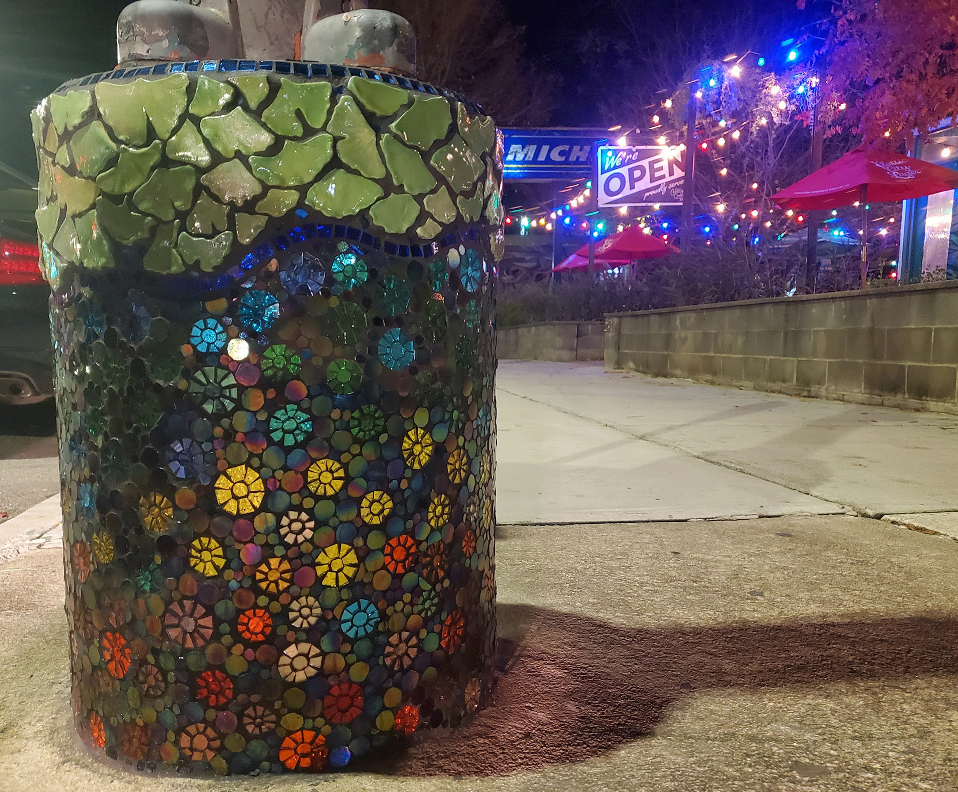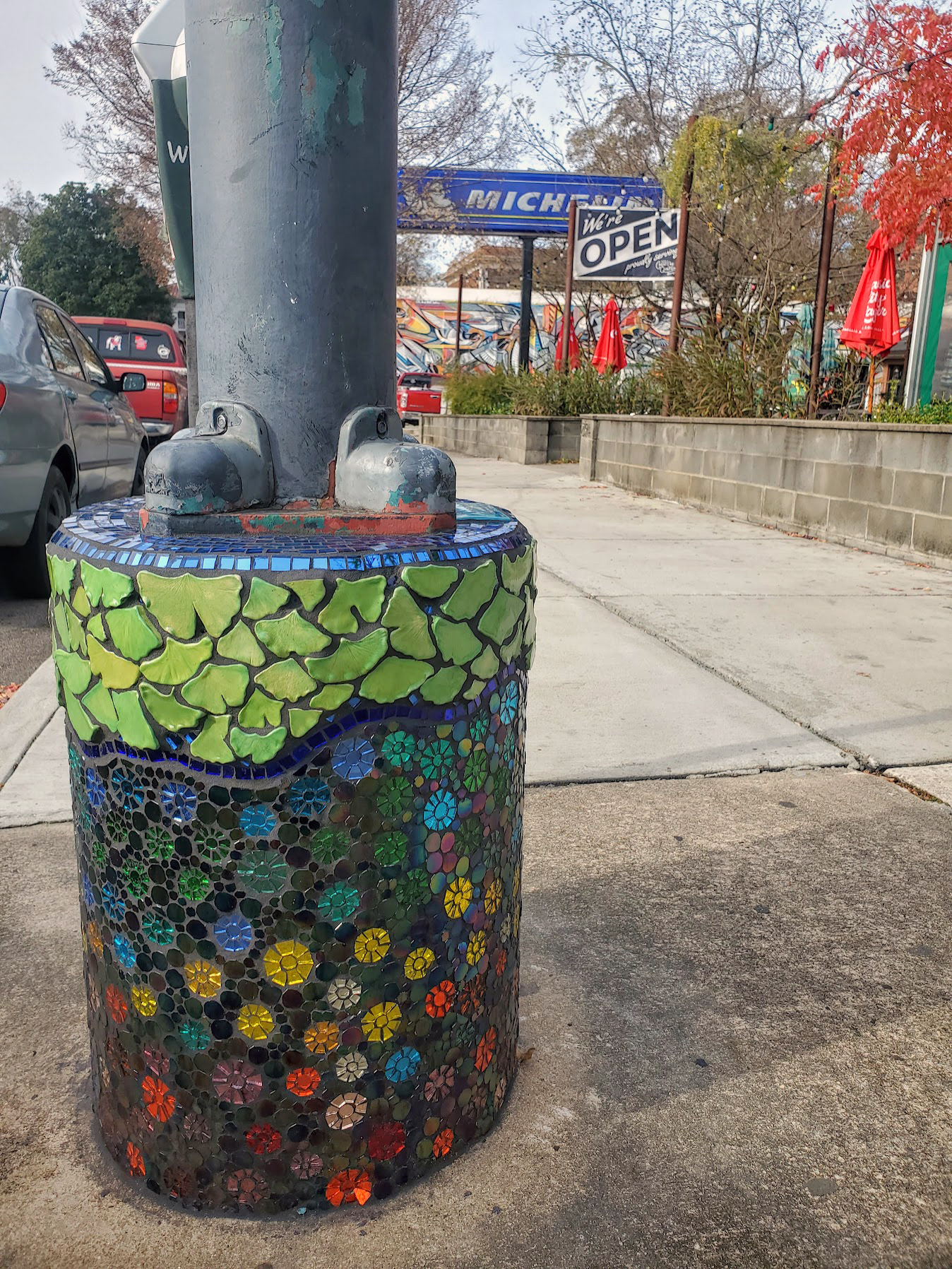 Project Ginkgo 2018: Lightpole base mosaic installed outside of The World Famous on Hull St.