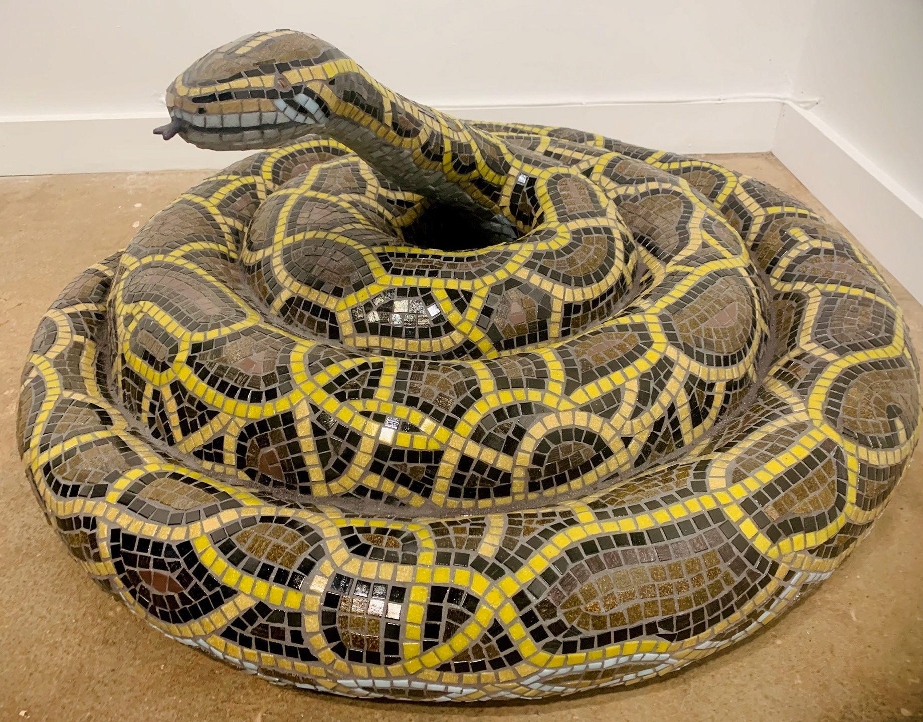 Mosaic garden tower inspired by the Kalta Minar (Khiva, Uzbekistan)